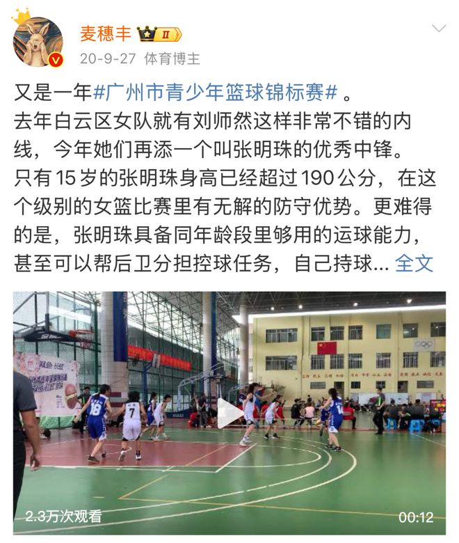 如此多的锻炼和亮眼的履历,令20岁的张明珠成了广东女篮的重点培养对象,也是中国女篮潜在的新人。