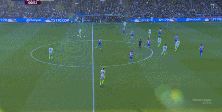 不过,人还在,精力不可能和上赛季类似,所以哪怕在主场,水晶宫依然保守应对,直至第10分钟,采用连续争高球的方式打进了禁区: